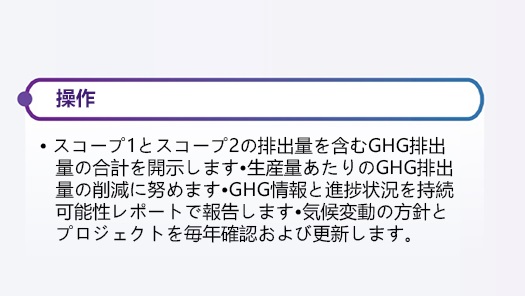 。環境管理の承認を継続的に見直しますサプライチェーンおよび日常業務における炭素排出量を管理するための各および炭素削減プログラムです。